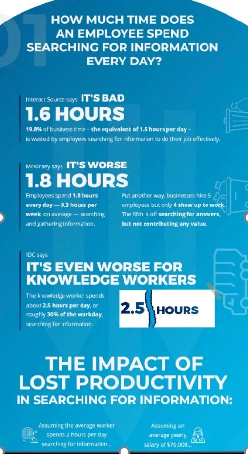 Studies show knowledge workers waste between 1.6 and 2.5 hours per day just hunting for information: